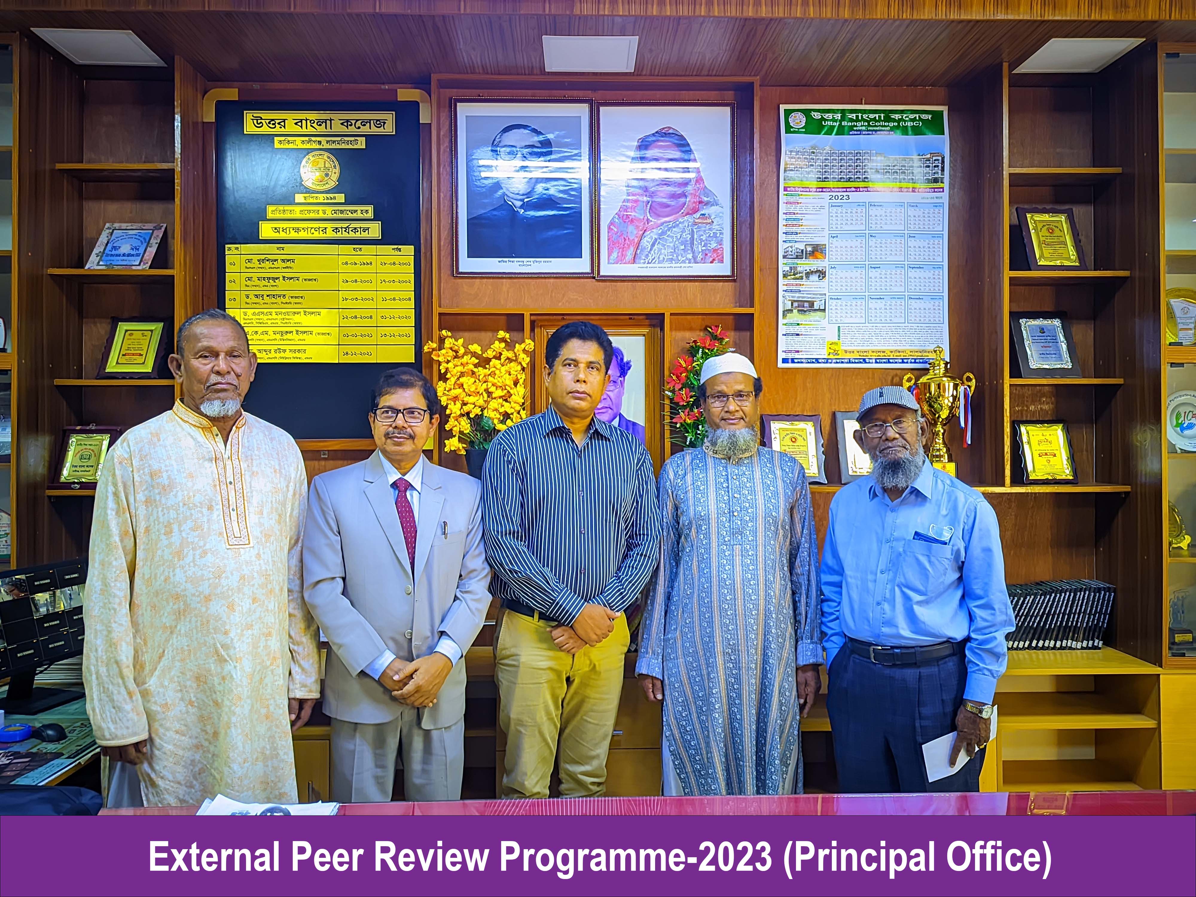 External Peer Review program from last 26 to 28 2023 at 'Uttar Bangla College, Kakina, Lalmonirhat' Prof. Dr. Bikash Chandra Sarkar, Department of Agricultural Chemistry, Haji Mohammad Danesh University of Science and Technology, Dinajpur. Professor Dr. Ashraful Islam Khan, Department of Population